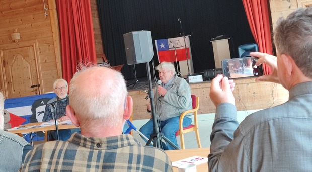 Under söndagen orienterade de medverkande partierna om sitt aktuella politiska arbete. Jan Jönsson, deltagare från SKP, berättade om partiets framgångsrika EU-valrörelse, studiekurserna partiet genomför och kommande kongress.